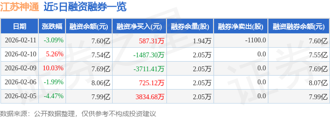 证券之星消息,截至2026年2月11日收盘,江苏神通(002438)报收于18.8元,下跌3.09%,换手率11.74%,成交量55.04万手,成交额10.56亿元。